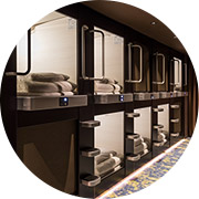 サイドデスクと専用ロッカーを備えた個室タイプのカプセル。快適性を追求したプライベート空間はビジネスでのご利用に最適です。